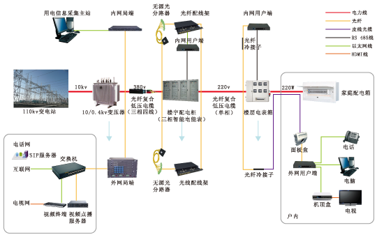 用做智能電網中家庭用戶的高帶寬需求提供傳輸線路,從樓層電表箱到用戶。皮線的彎曲半徑較大,適合大樓內暗管穿放。