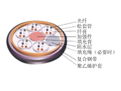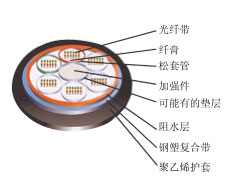 GYDTS(金屬加強(qiáng)構(gòu)件、光纖帶松套層絞填充式、鋼-聚乙烯粘結(jié)護(hù)套通信用室外光纜)