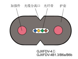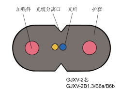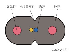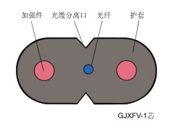 GJXV金屬加強(qiáng)件、氯乙烴護(hù)套、蝶形引入光纜