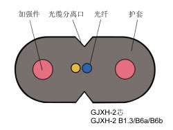 GJXH金屬加強(qiáng)件、低煙無鹵阻燃聚烯烴護(hù)套、蝶形引入光纜