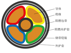 成束阻燃A類聚烯烴絕緣雙鋼帶鎧裝聚烯烴護套無鹵低煙耐火軟電纜 |