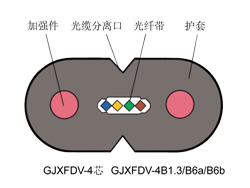 | GJXFDV | 非金屬加強(qiáng)件、聚氯乙烯護(hù)套、蝶形引入光纖帶光纜 | |