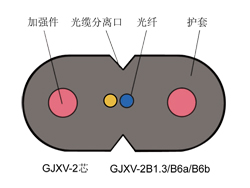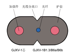 | GJXV | 金屬加強(qiáng)件、聚氯乙烯護(hù)套、蝶形引入光纜 | |