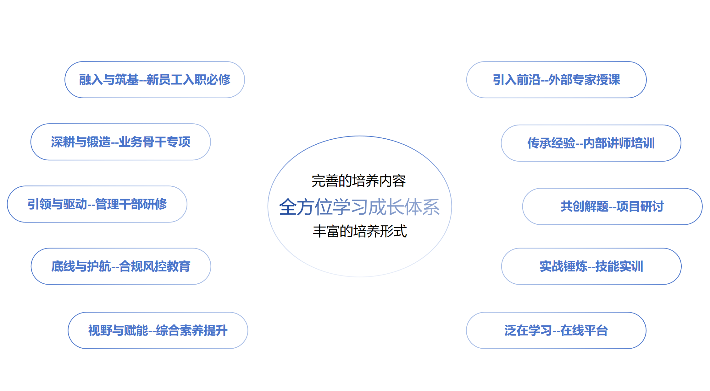 我們構(gòu)建了全方位、多層次的人才培養(yǎng)體系,覆蓋新員工入職必修課、業(yè)務(wù)骨干專項(xiàng)培訓(xùn)、管理干部研修及合規(guī)風(fēng)控教育等內(nèi)容。通過項(xiàng)目研討、技能實(shí)訓(xùn)、外部專家授課、內(nèi)部講師培訓(xùn)及在線學(xué)習(xí)平臺(tái)等豐富形式,持續(xù)提升員工的崗位技能與綜合素養(yǎng)。我們致力于打造持續(xù)成長(zhǎng)的學(xué)習(xí)型組織,助力每一位員工在發(fā)展中實(shí)現(xiàn)自我突破,與企業(yè)共同進(jìn)步。
